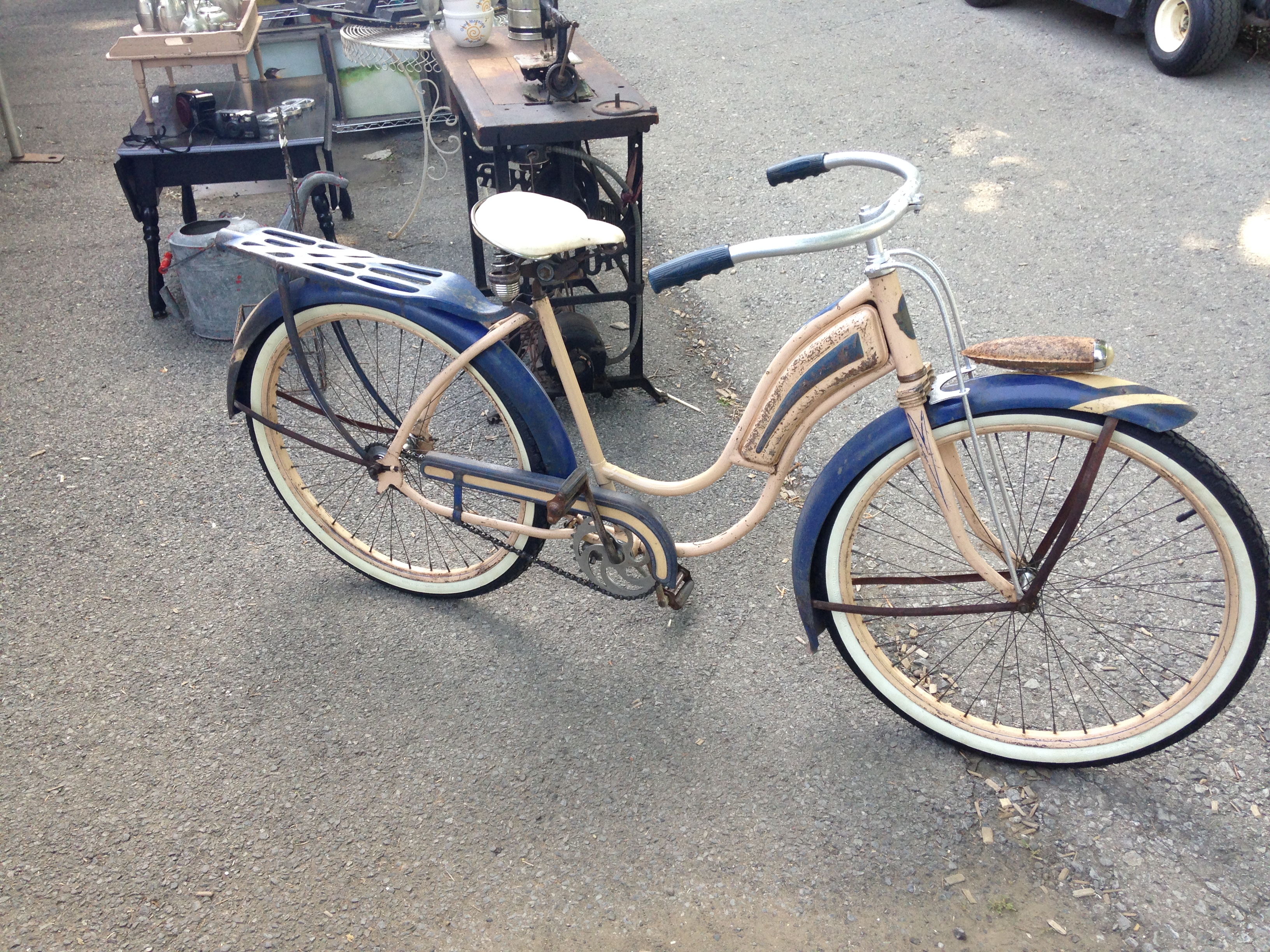 The antique bread box was another Brimfield purchase. All the cabinets in the kitchen, along with the counter tops, the sink and faucet were from Lowe’s.