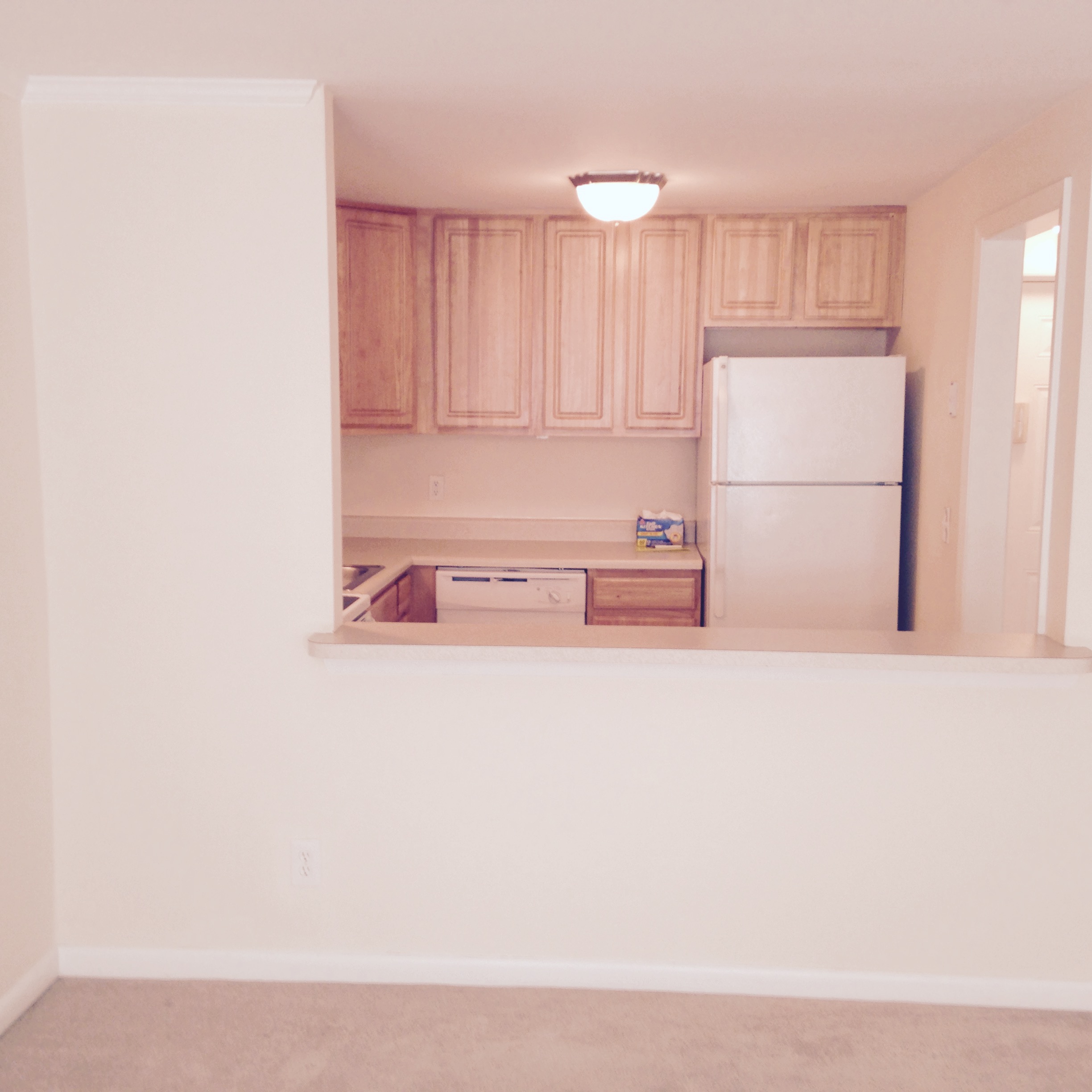 The kitchen features a flat top cooking surface (no more scrubbing drip pans!!!) and a dishwasher, which I have not had since my college days in Massachusetts!!!