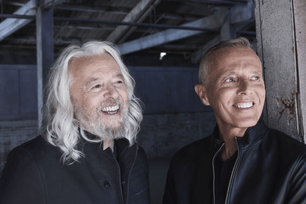 Top: Roland Orzabal (L) and Curt Smith (R) on the cover of their 1985 album. Bottom: The duo circa 2024. (Image found online.  Original source unknown.)