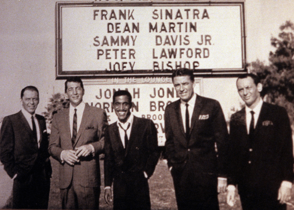 Frank Sinatra and the Rat Pack standing in the order they are listed on a Las Vegas marquee circa 1964. (Image found online.  Original source unknown.)