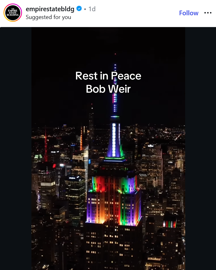 Salute to Bob Weir courtesy of the Empire State Building’s IG page.