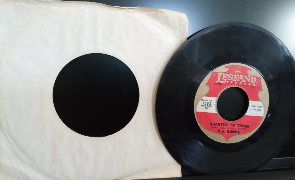 I still have my mom’s 45 of Bonds’ 1961 hit. (Image by me.)