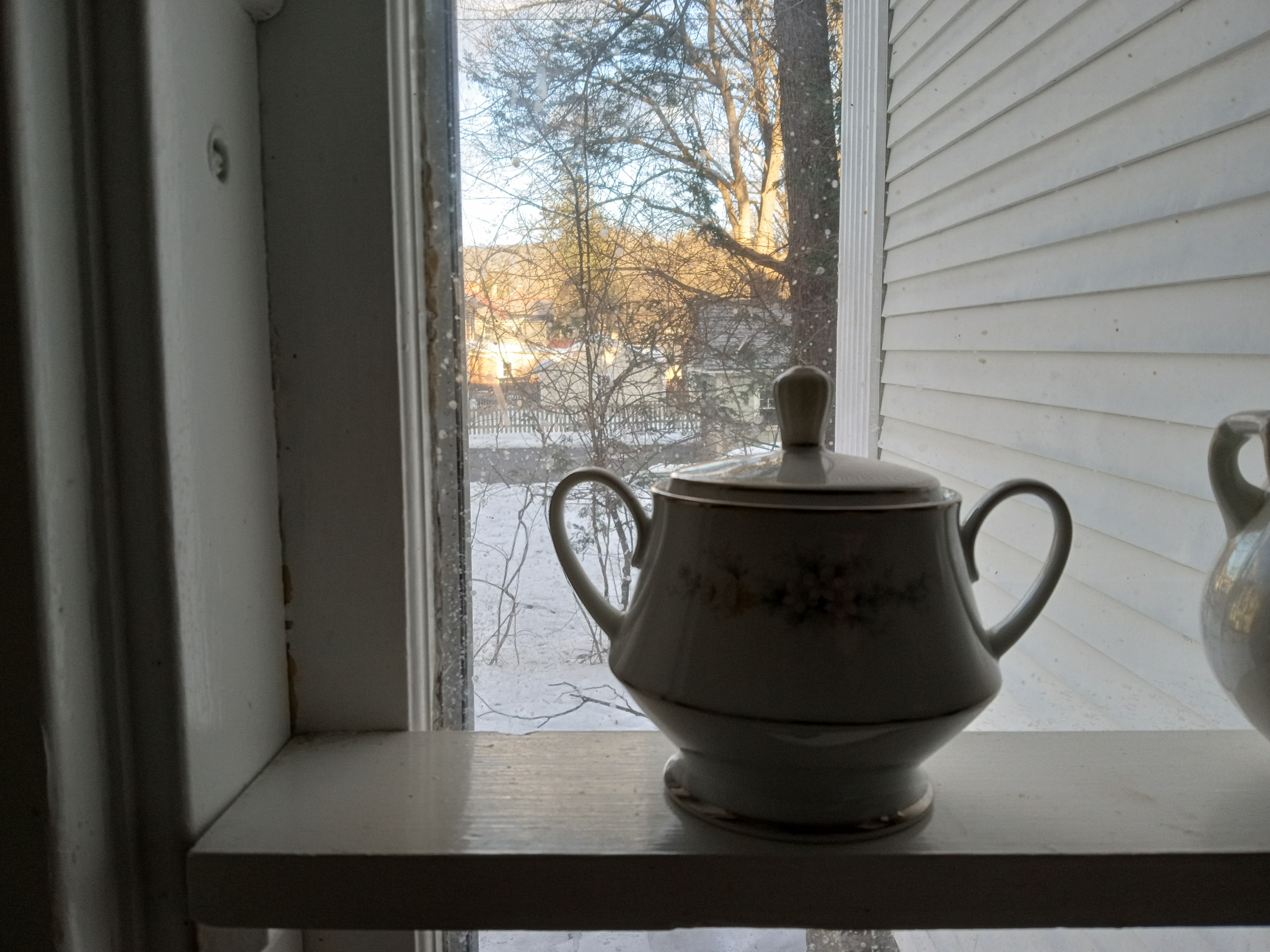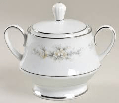 My kitchen has built in shelves in the window frame and it is the perfect spot for these beauties. The first sugar bowl I stumbled upon was by Noritake in the Melissa pattern. I absolutely love the soft delicate flowers